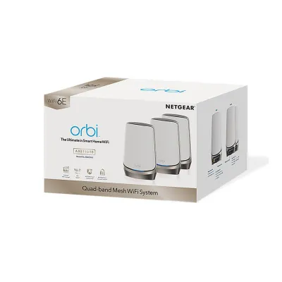 【NETGEAR Orbi Mesh WiFi 6E 旗艦級四頻路由器 2 件套裝 (RBKE963)】包括一部 Orbi RBRE960 主機路由器,以及兩部 Orbi RBSE960 衞星子機。