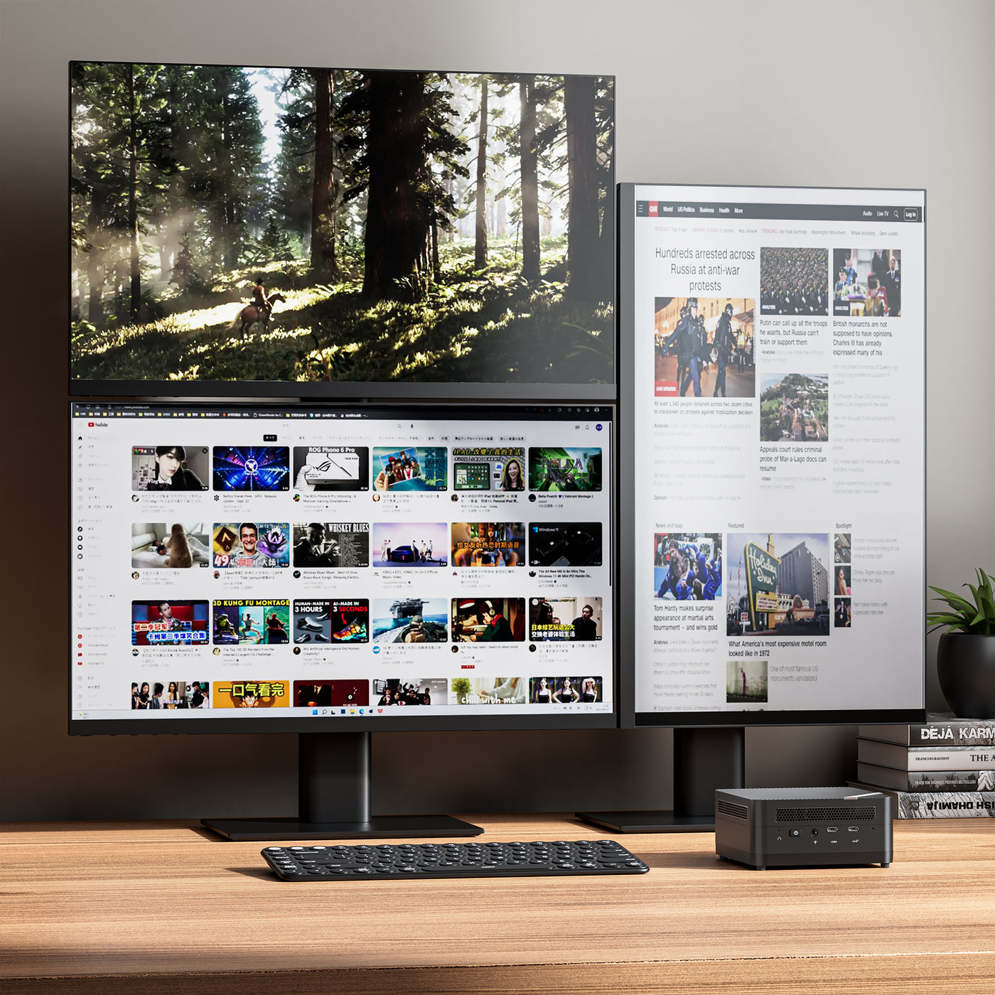 UM690S配備一個 USB4連接埠,可以連接一個 8K@60Hz 熒幕。通過連接USB4和兩個 HDMI連接埠,用戶可以同時設置三個熒幕,滿足多熒幕使用需求。