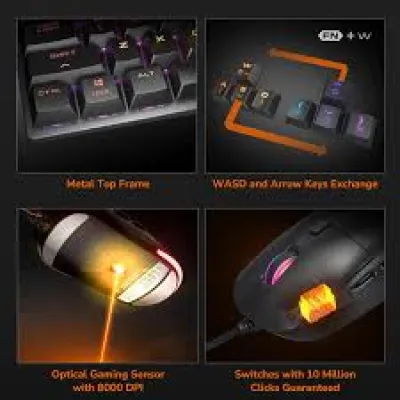 The keyboard’s mechanical switches and anti-ghosting technology seamlessly complement the mouse’s adjustable DPI and 1000 Hz polling rate, ensuring rapid, precise, and dependable responses to your commands.