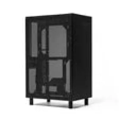 Meshroom D 背面的鋁製支腳可將其直立放置在桌面上,節省空間,同時優雅地展示您的高階 GPU。
